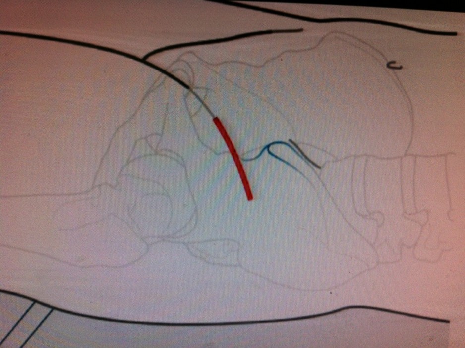 Ο ασθενής είναι σε ύπτια θέση και η προσπέλαση γίνεται δια των μυών χωρίς διατομή ή τραυματισμό αυτών.